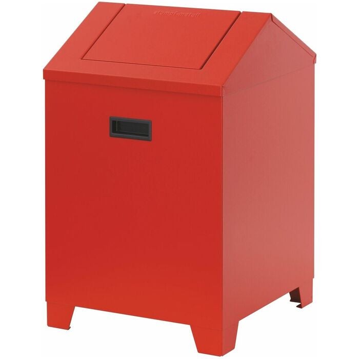Avfallsbehållare med pendellucka, obrännbar. Töms genom att behållarens överdel tas av. Fyllnadsvolym 73 liter.