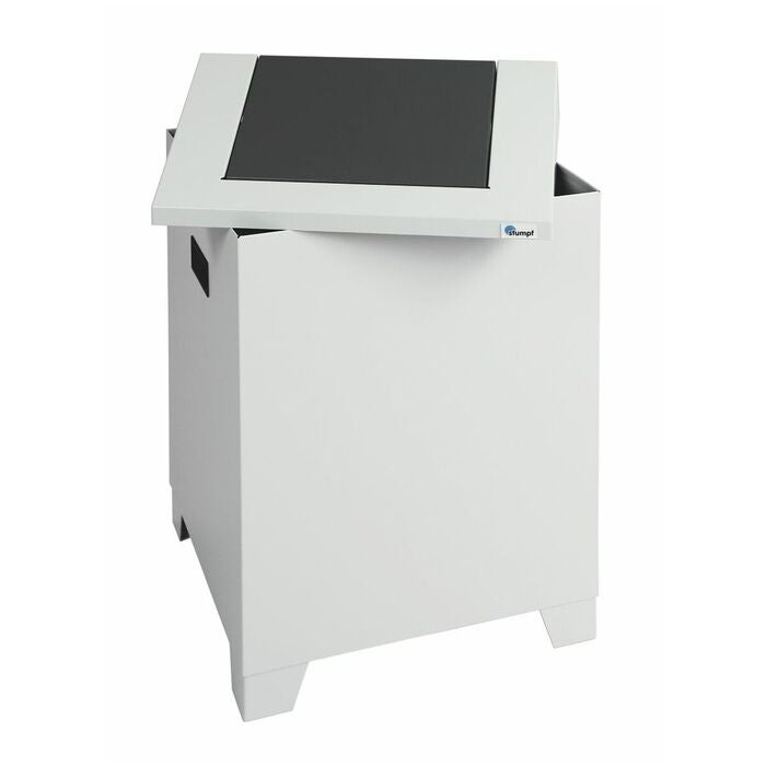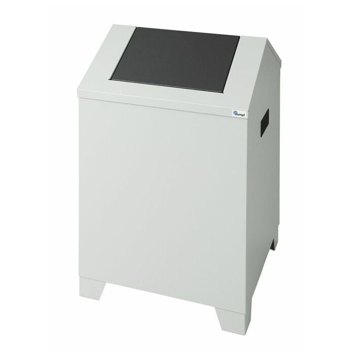 Avfallsbehållare med pendellucka, obrännbar. Töms genom att behållarens överdel tas av. Fyllnadsvolym 73 liter.