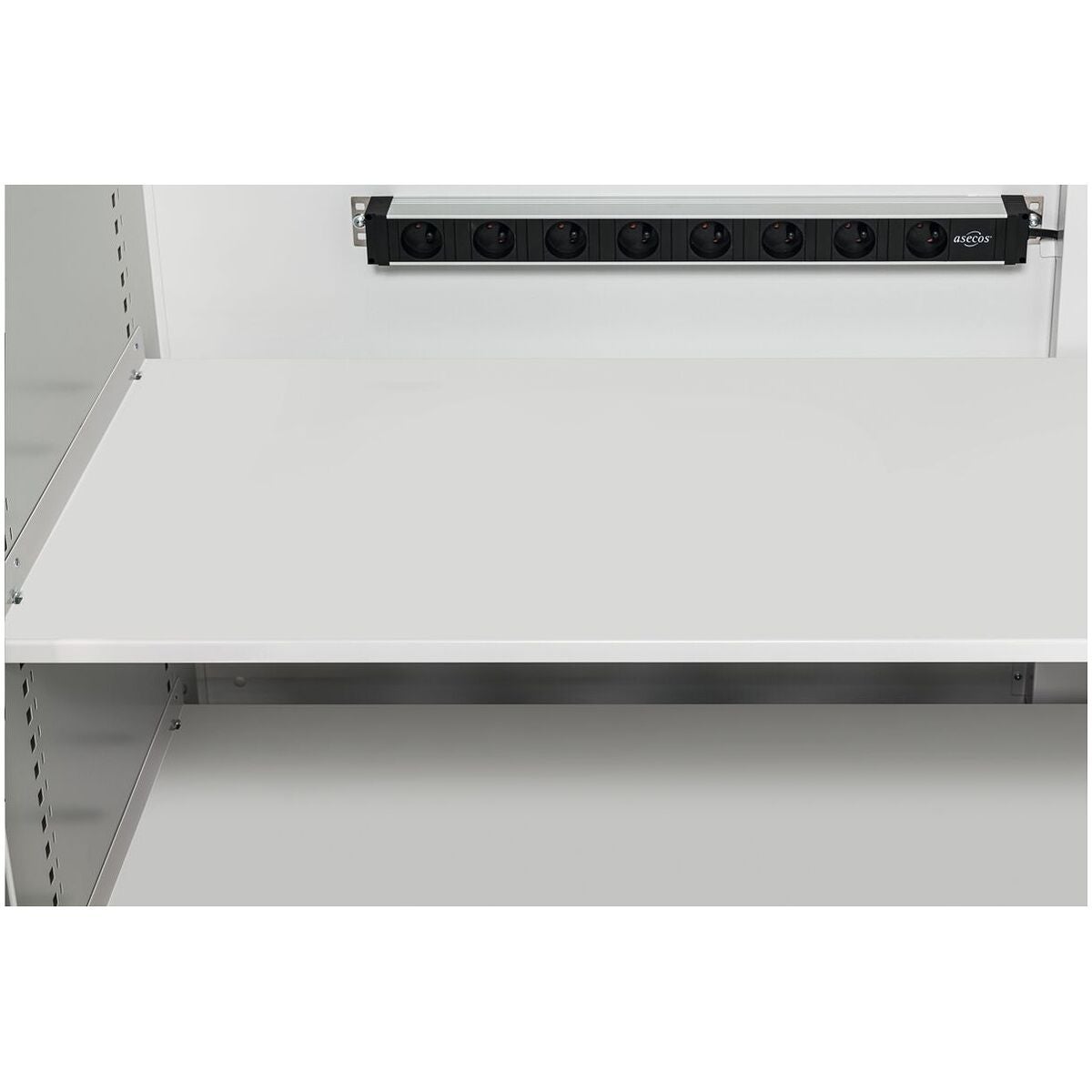 Skåp med 5 hyllplan inkl. eluttagslister, 1 bottenuppsamlingstråg, stålplåt, pulverbelagd.