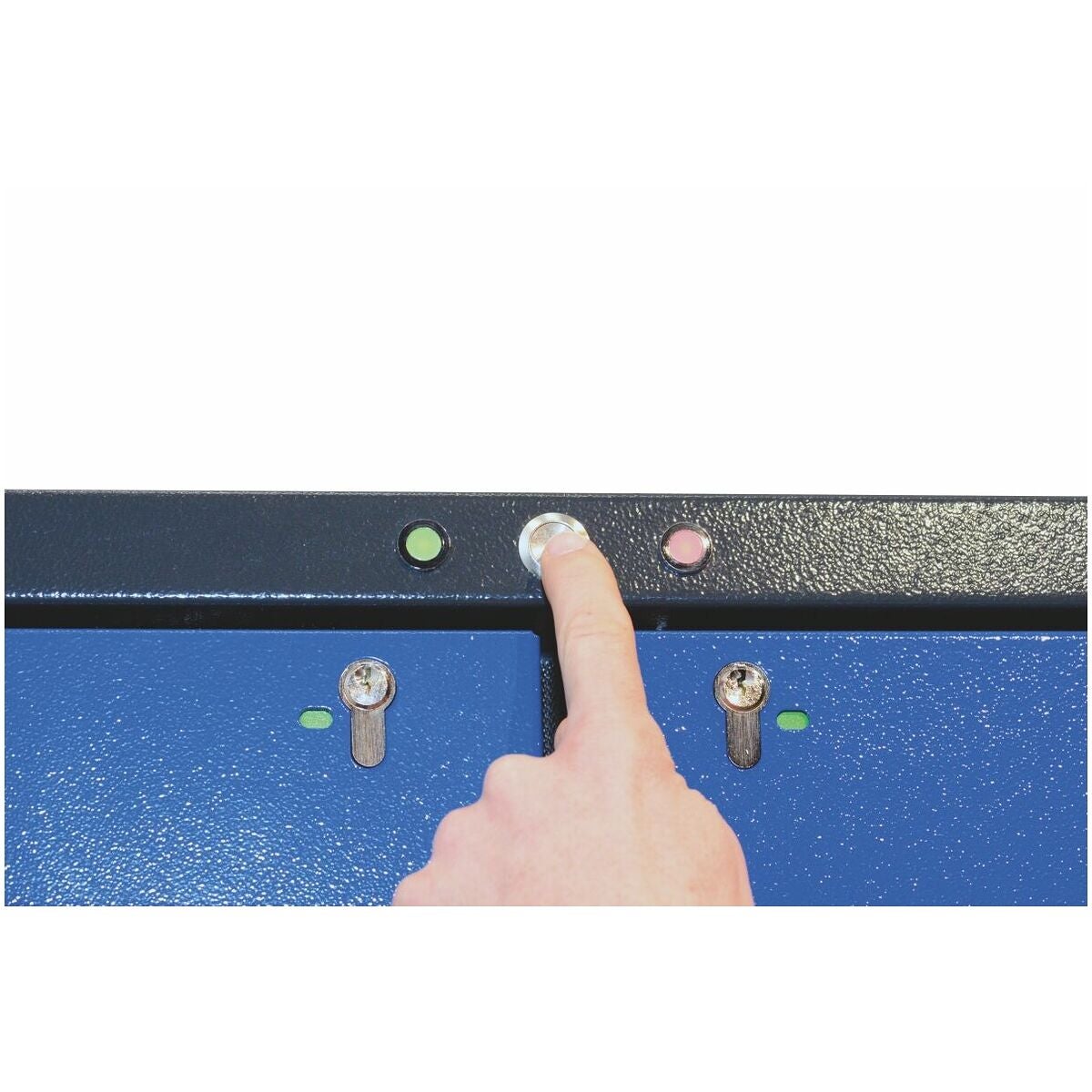 • Låsbar med profilcylinder (låssystemduglig) och låstillståndsindikering (röd/grön). Inte kompatibelt med Hoffmann låssystem.