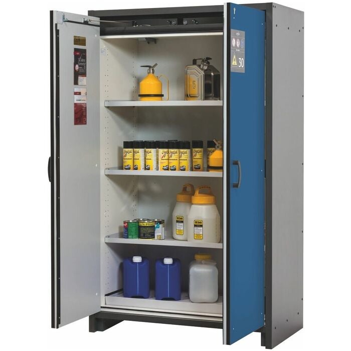 Skåpstomme i antracitgrå RAL 7016, dörrar i signalblå RAL 5005.