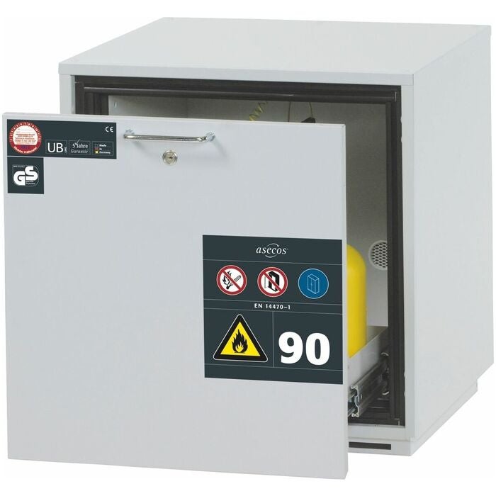 För säker och föreskriven förvaring av farliga ämnen i arbetslokaler. Brandmotståndstid 90 minuter. Frånluftanslutning med ytterdiameter 50 mm.