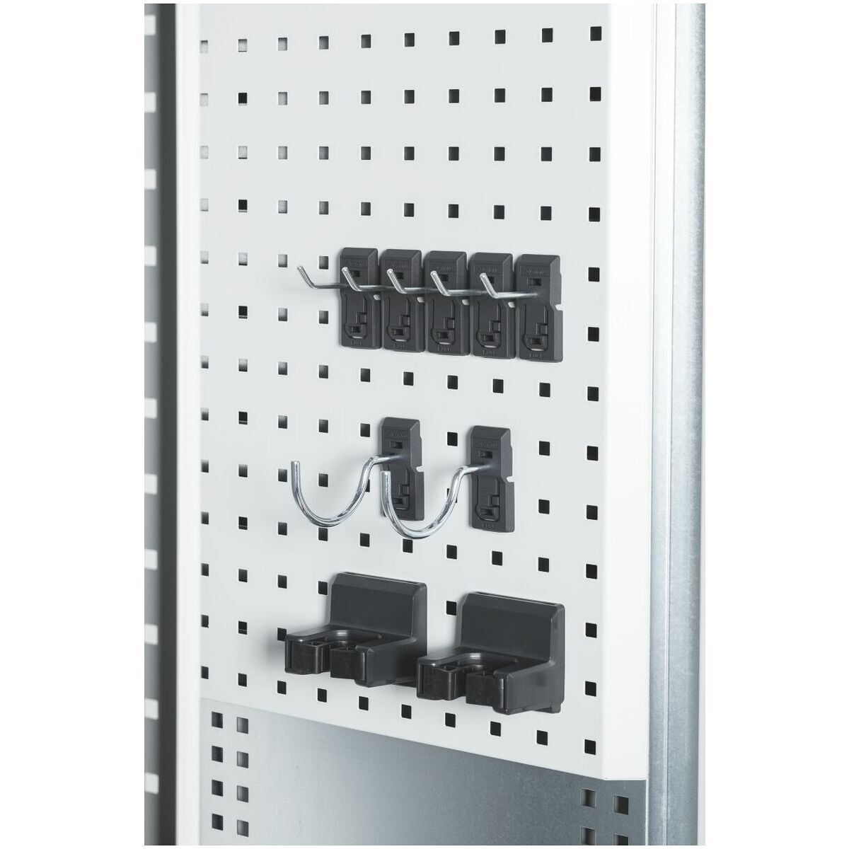 Praktisk indelning med 4 hyllplan bredd 13G. Inklusive GARANT easyFix krokar och hållare.
