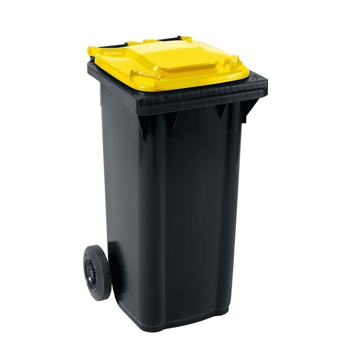 Stor soptunna av plast med stympad konform. Stabiliserande flänsar vid överkanterna. Lock med avloppsränna för kondensvatten runt om. Lockhandtagen är lätthanterliga och snett anordnade. 4 gångjärn (storlek 80: 2 gångjärn) med säkrade gångjärnsbultar. Förstärkt botten med patenterad axelkonstruktion. Stabilt utvändigt chassi med förstärkt, robust hjulaxel och lättrullande hjul. Locket är utfört med bullerisolerad locköppning och uppfyller bullerförordningen enligt direktiv 2000/14/EU.