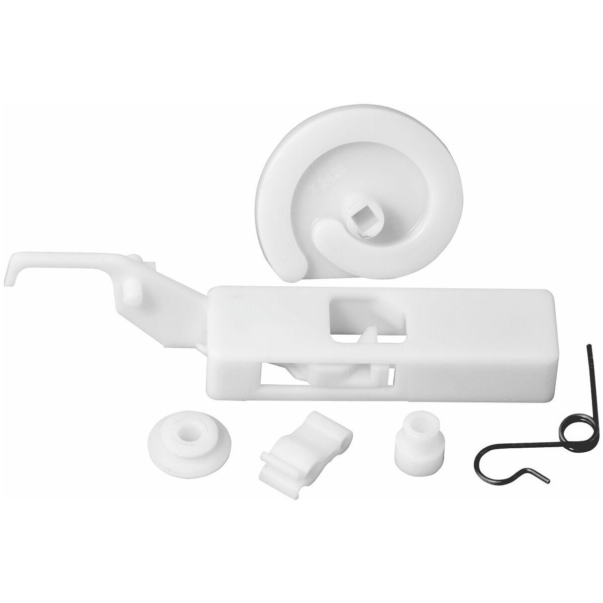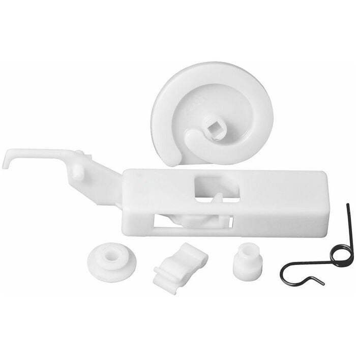 | Material låssnäcka, inställningsspak, rullar, klämmor | vit plast |