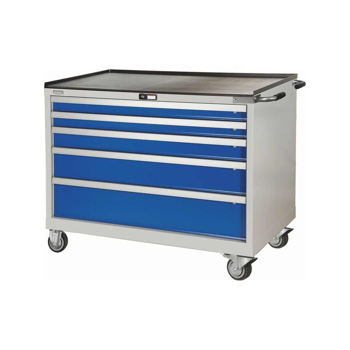 - Utdragslådor i åkbara verktygsskåp måste utrustas med enkellådlåsning. Då blir lådorna automatiskt låsta när de stängs så att de inte kan öppnas under transport. Enkellådlåsning för utdragslådor i produktgrupp 94 (t.o.m. 08/2019) finns under nr 949605 i reservdelsförteckningen.