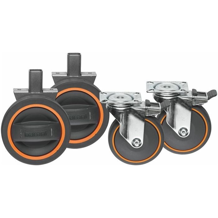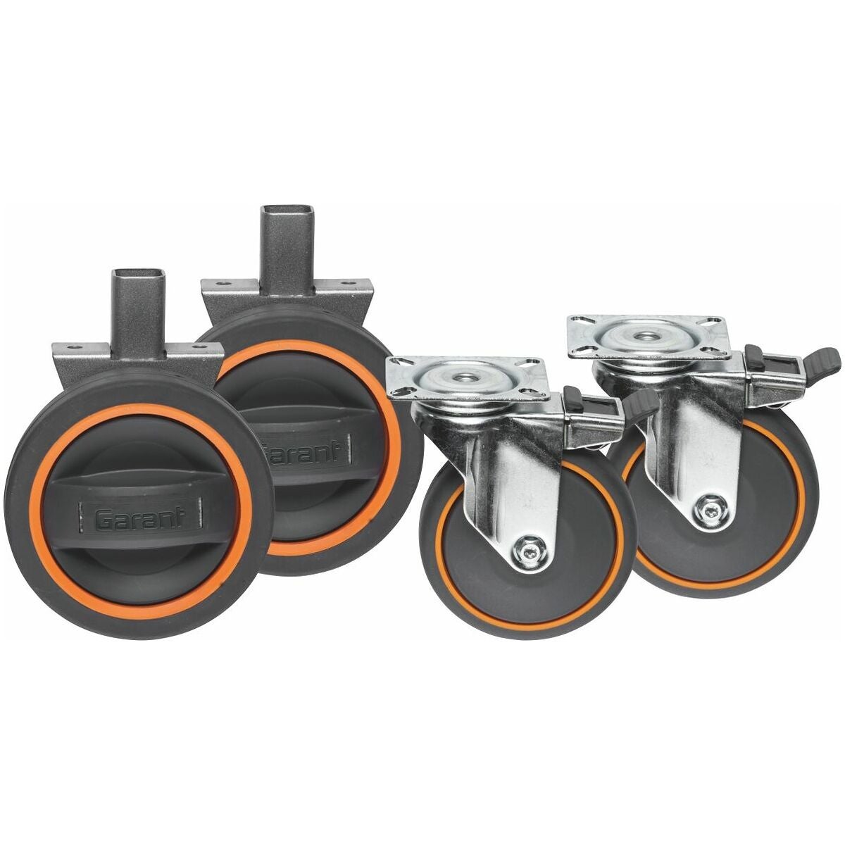 Rullsats till GARANT GridLine verkstadsvagn och rullarbetsbänk med tillverkningsdatum från mitten av 2017. Rullar med trådskydd. Svängbara hjul med spärr för hjul och vridkrans.