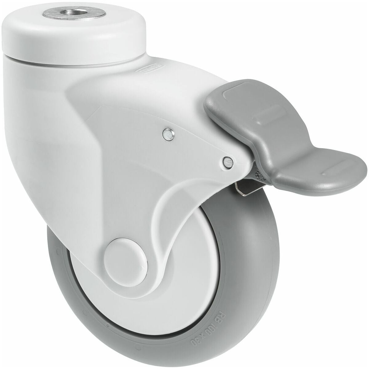 Svängbart hjul av plast ⌀ 100 mm, nötningsbeständig gummiyta i ABS-plasthölje.