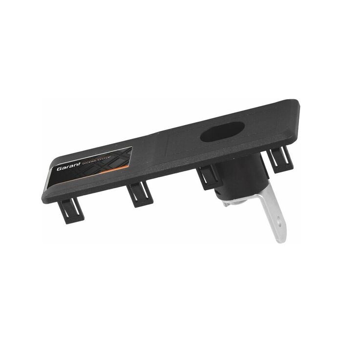 Låsplatta med vinkel för montering av låsstång. Skruven för montering av låsstången medföljer inte. Skruven som är monterad kan återanvändas när det defekta låset har demonterats. Låsplattan snäpps på plats. Några andra fästelement krävs inte.