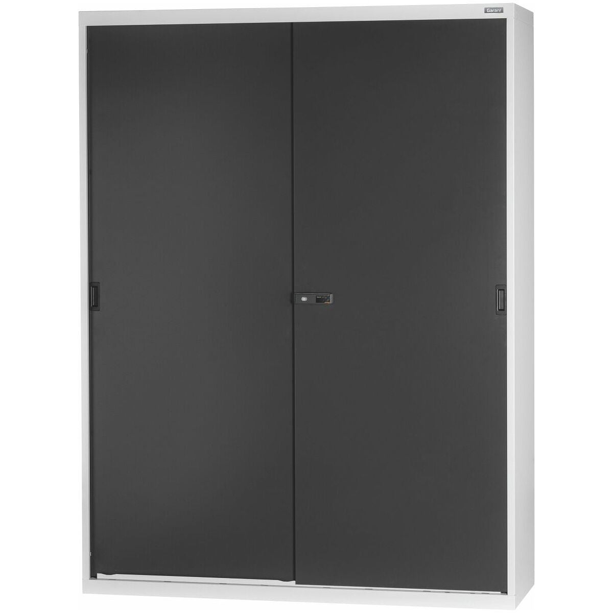 Utrustat skåp i 60×20G, med utdragslådor 26×14G. Hyllor kan monteras i 25 mm raster. Skjutdörrarna är förstärkta på insidan och kan låsas med 2K-Haptoprene-handtag med stiftcylinderlås. Fasthållning av skjutdörrarna i ändlägen (öppna/stängda).