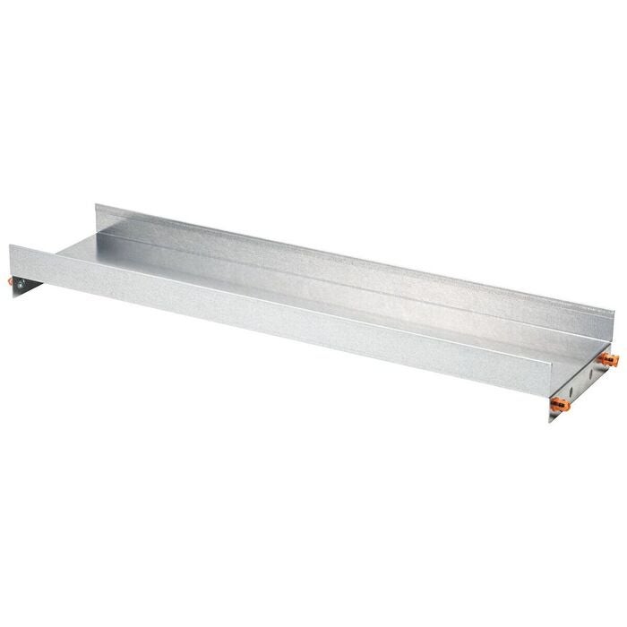 Av förzinkad stålplåt, uppåtfalsad på båda sidor.