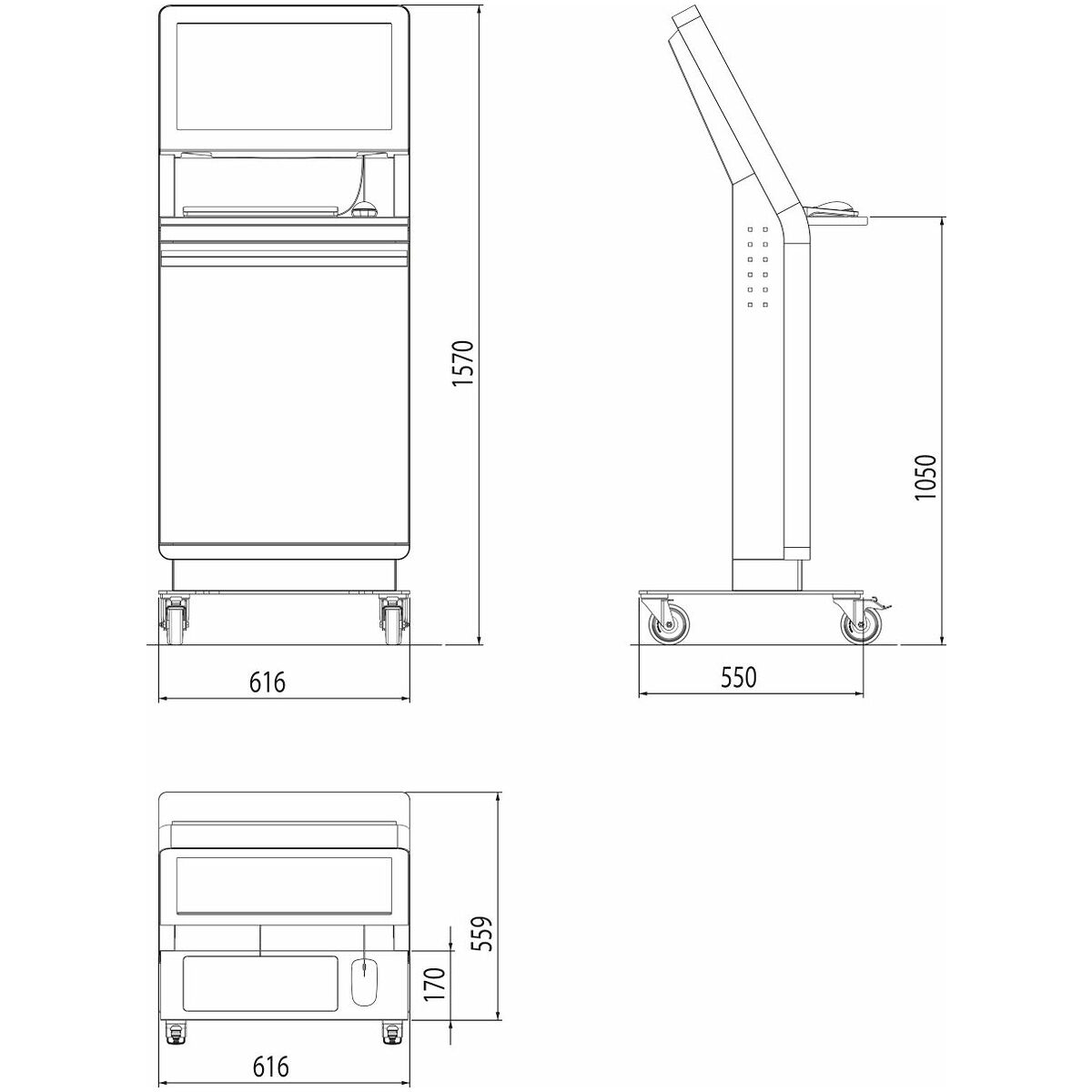 Utan bildskärm, för individuell utrustning med 24 tum bildskärm. Maximal möjlig bildskärmsstorlek: bredd 525 mm, höjd 315 mm, djup 90 mm.