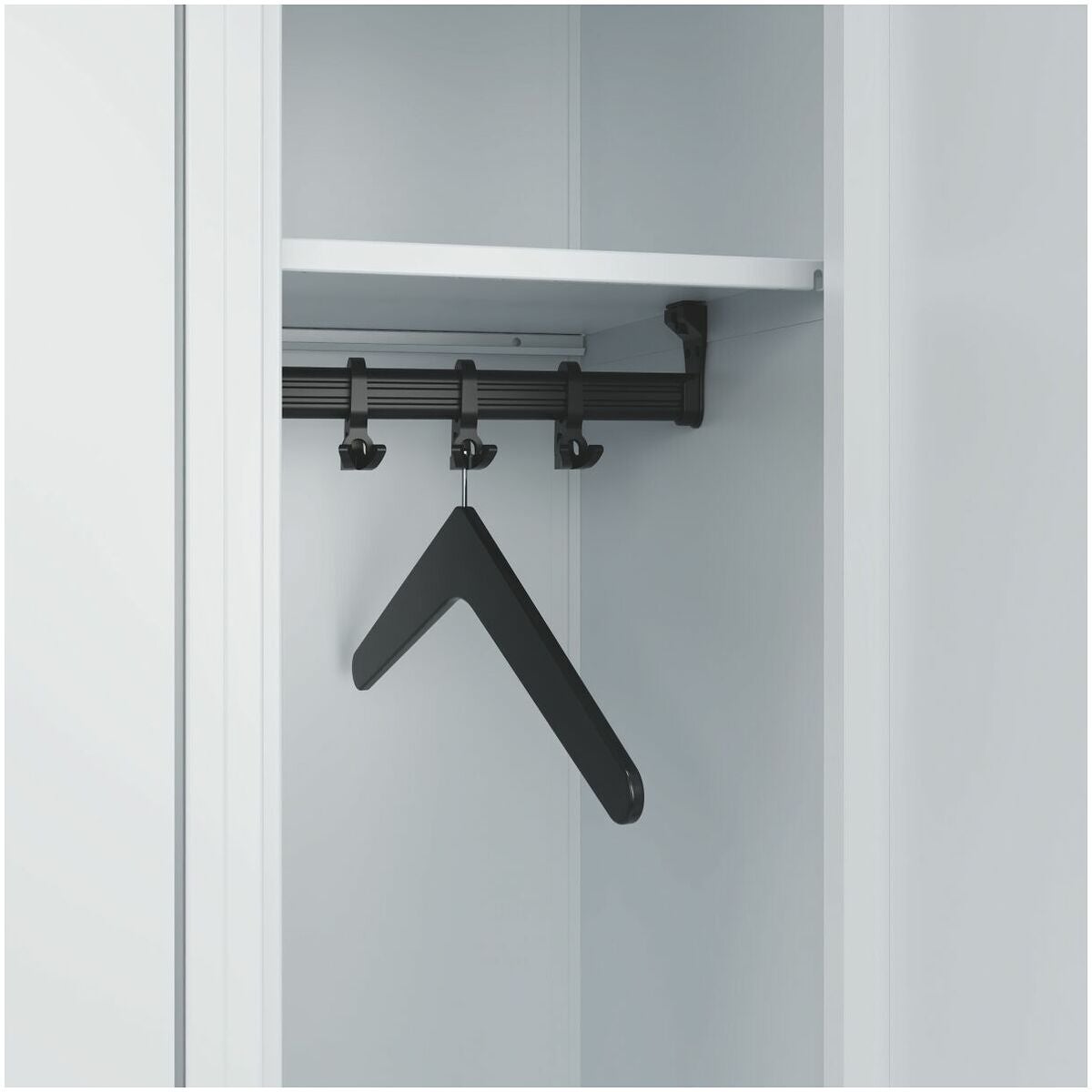 Svartlackerad klädhängare av massivt hårdträ. Med specialupphängning, kan bara användas i HOLEX klädskåp med klädstång.