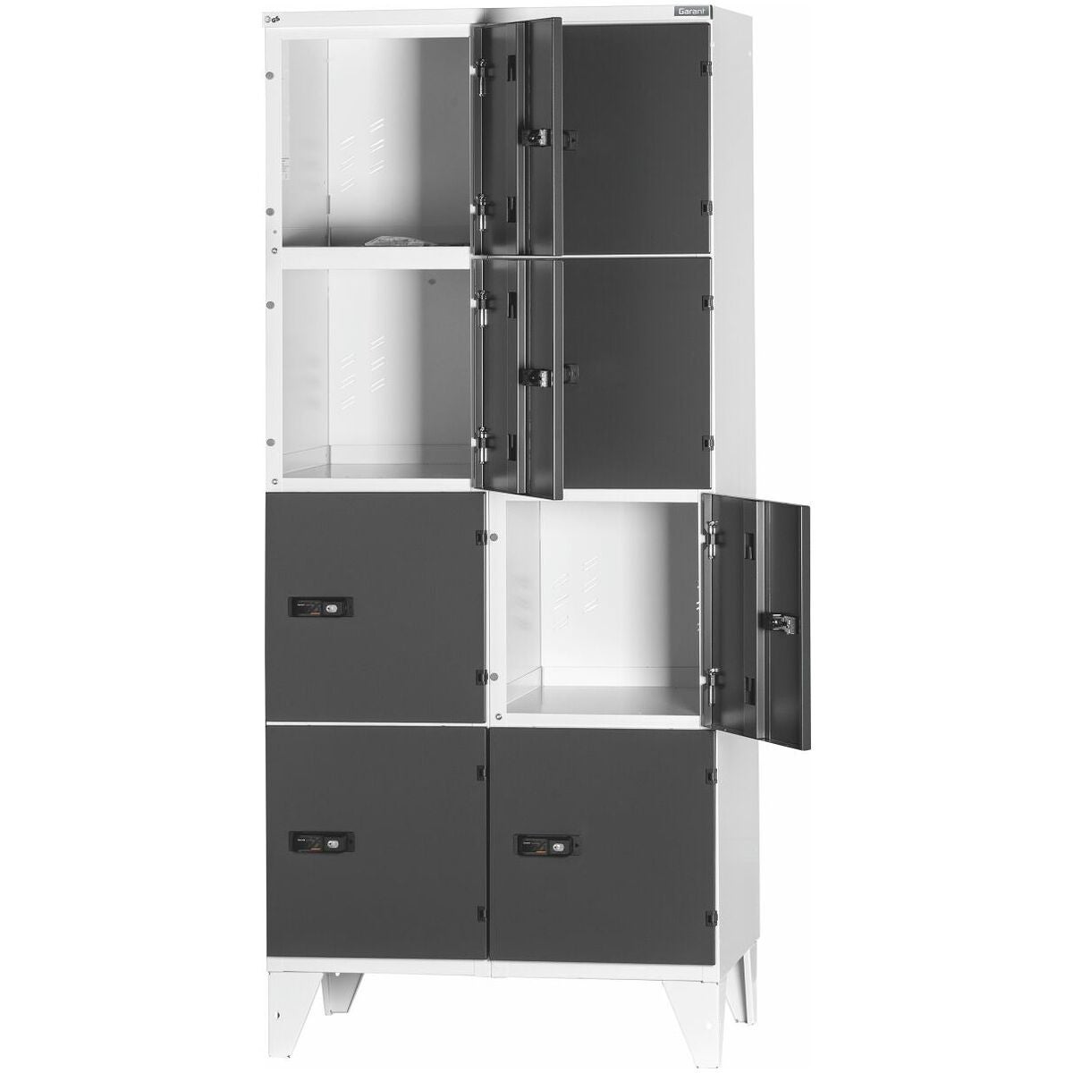 Stomme ljusgrå RAL 7035, dörrar antracit RAL 7016, pulverbelagda.