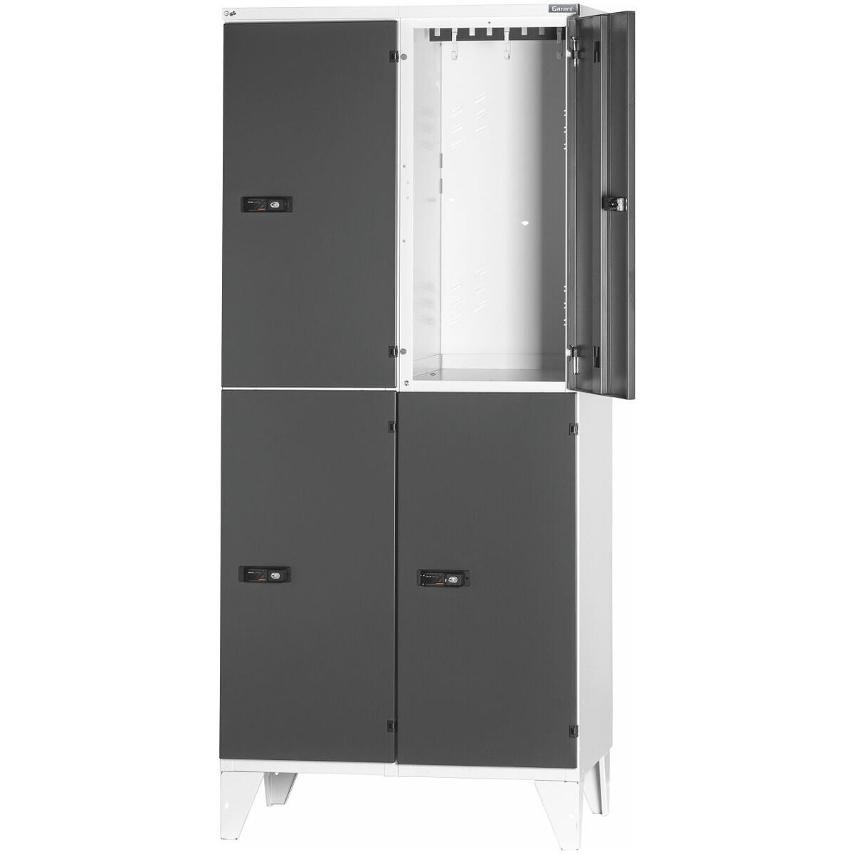 Stomme ljusgrå RAL 7035, dörrar antracit RAL 7016, pulverbelagda.