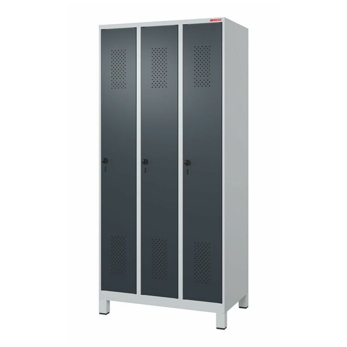 Klädskåp med plastfötter och säkerhetslåsklinka