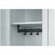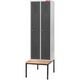 Garderobskåp med sittbänksunderrede. Sektionsbredd 300 mm med fastsvetsad hatthylla. Klädstången har 3 skjutbara krokar. Dörr med rutmönstrad ventilationsperforering. Sittribbor som standard av bok, profil cirka 60 × 30 mm, hyvlade och rundade på alla sidor, klarlackerade.
