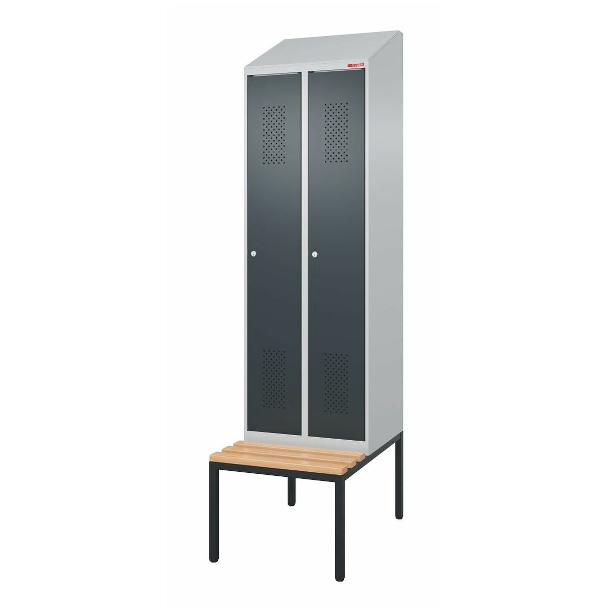 Klädskåp med snedtak, sittbänk och DOM cylinderlås