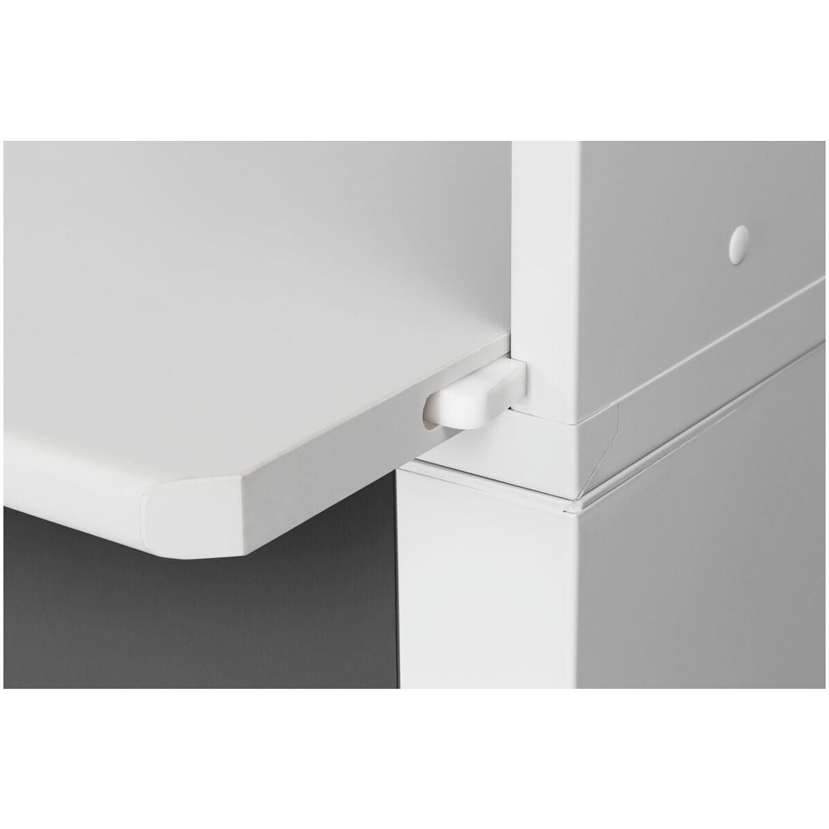 - Utdragbar arbetsskiva (melamin-trä) med skyddskant på baksidan och spärr i ändläget. Tjocklek 29 mm. Utdragslängd 150 mm.