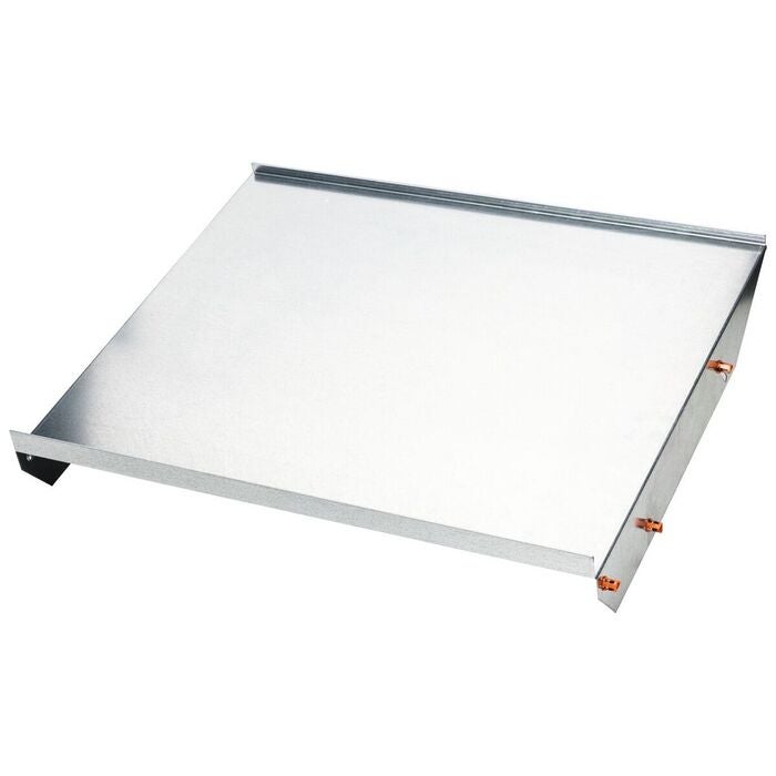 Av förzinkad stålplåt, uppåtfalsad på båda sidor.