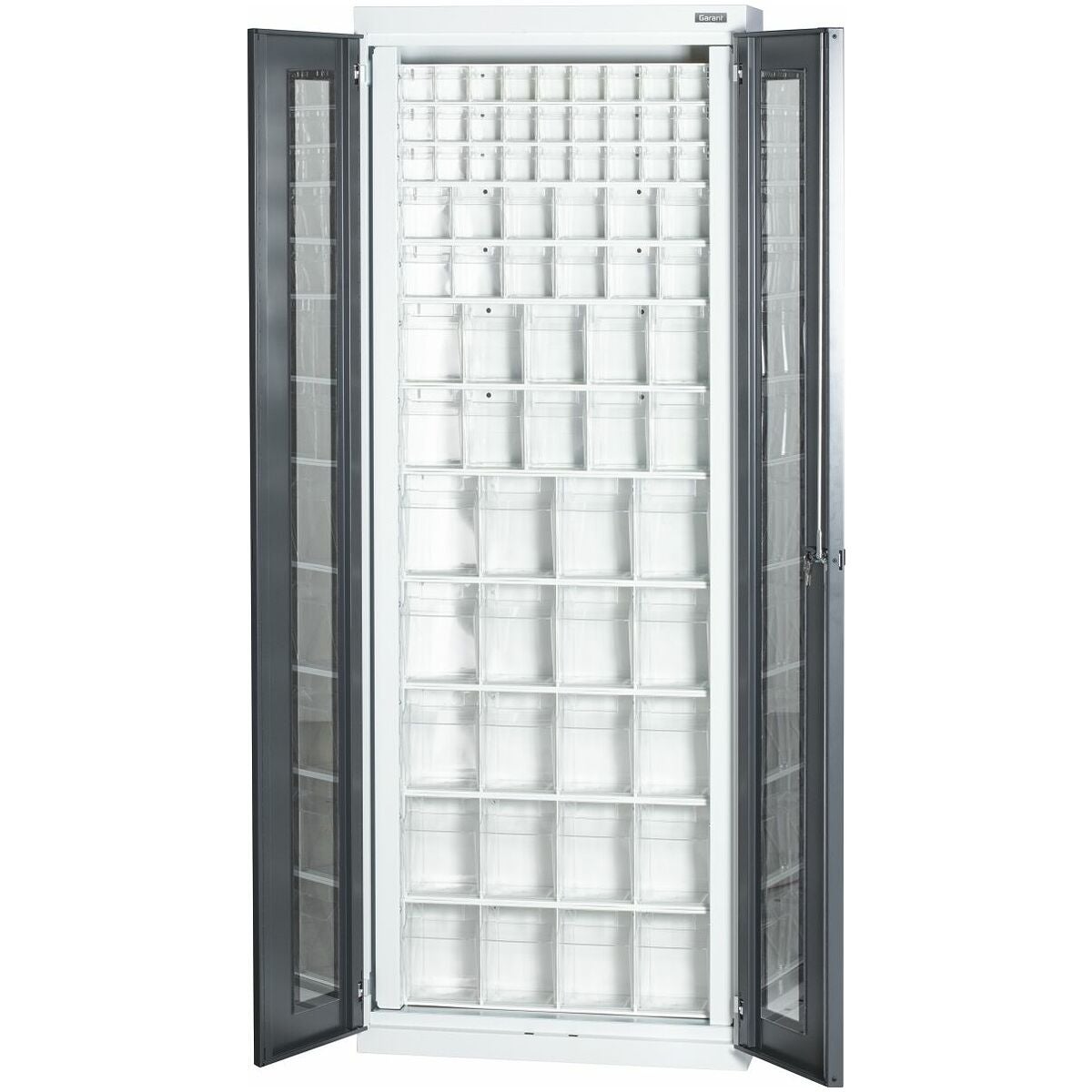 antal transparenta lådor (BxDxH): 27 st 50×42×46 mm 12 st 80×63×70 mm; 10 st 100×97×109 mm; 20 st 175×128×128x133 mm