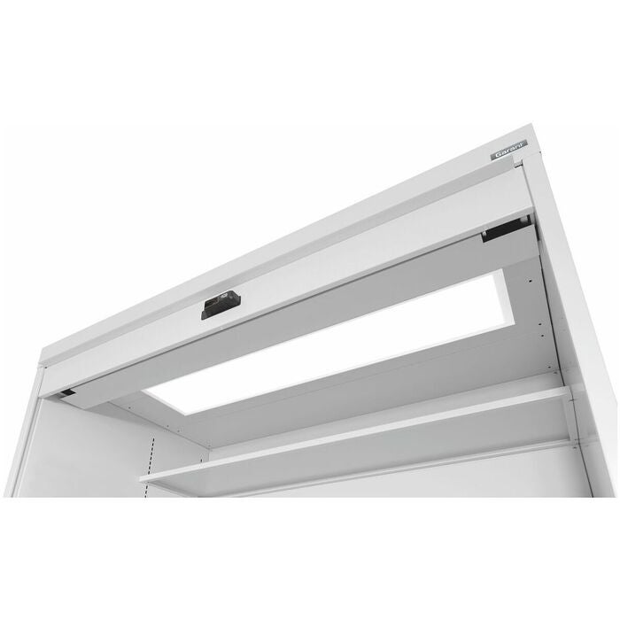 Överskåp med låsbar plastjalusi och följande utrustning: