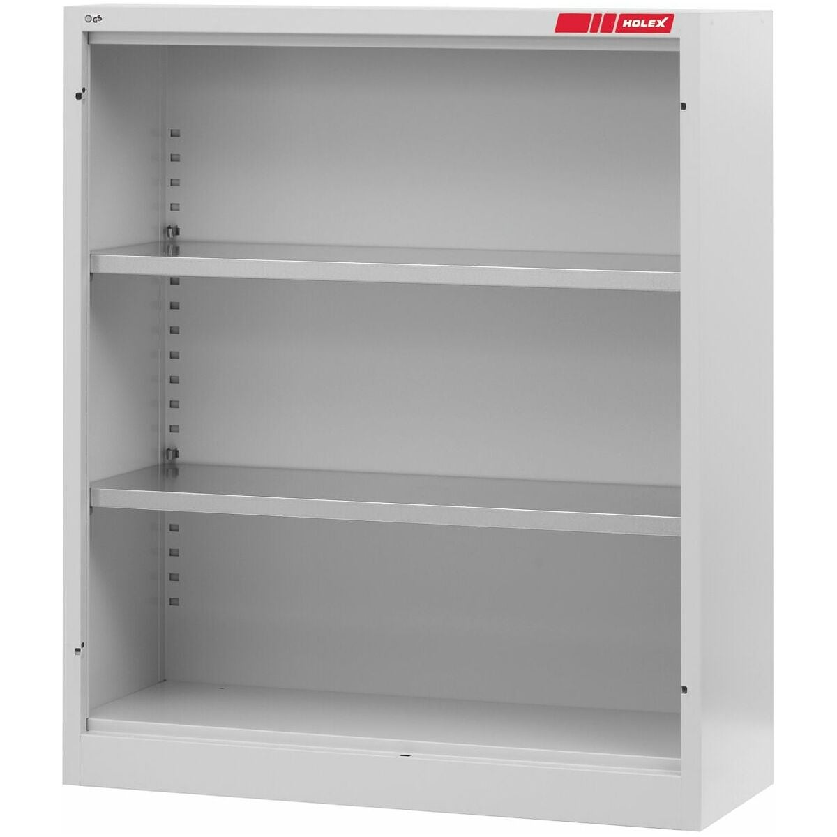 Stomme och dörrar av stålplåt, hyllplan kan fästas i 40 mm raster. Dörrarna har förstärkningar på insidan och kan låsas med skjuthandtag med stiftcylinderlås. Närmare information om låsanordningar se nr 950050 − 950060.