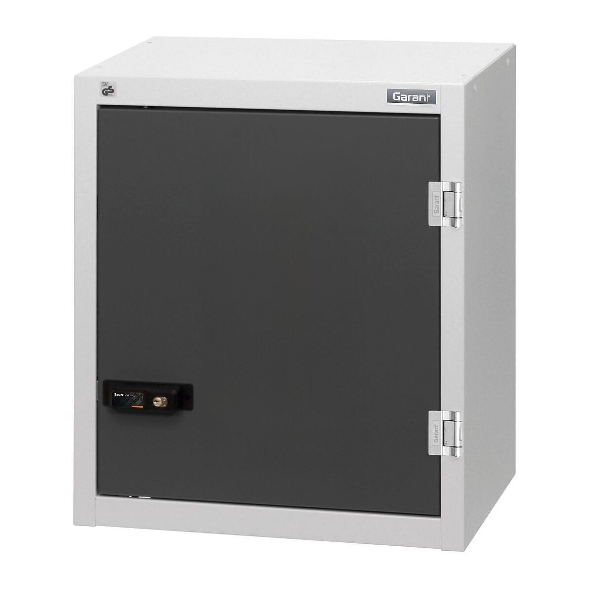 Hyllplan kan monteras i 25 mm raster. Bakvägg med □ 9×9 mm-perforering i 37 mm raster för infästning av GARANT easyFix krokar och hållare. Låsbart med 2K-Haptoprene-handtag med stiftcylinderlås. Kan på begäran också levereras med sluten bakvägg. Kabelgeomföring på skåpets ovansida.