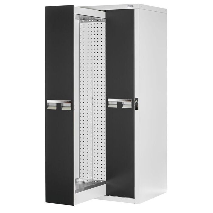 Utdragsramarna har ett perforeringsraster med □ 9×9 mm i 37 mm-raster för fastsättning av verktygshållare, hyllplanstråg och perforerade panelter. Vertikalskåpen är förberedda för golv- och väggmontering och måste ovillkorligen säkras mot vältning.