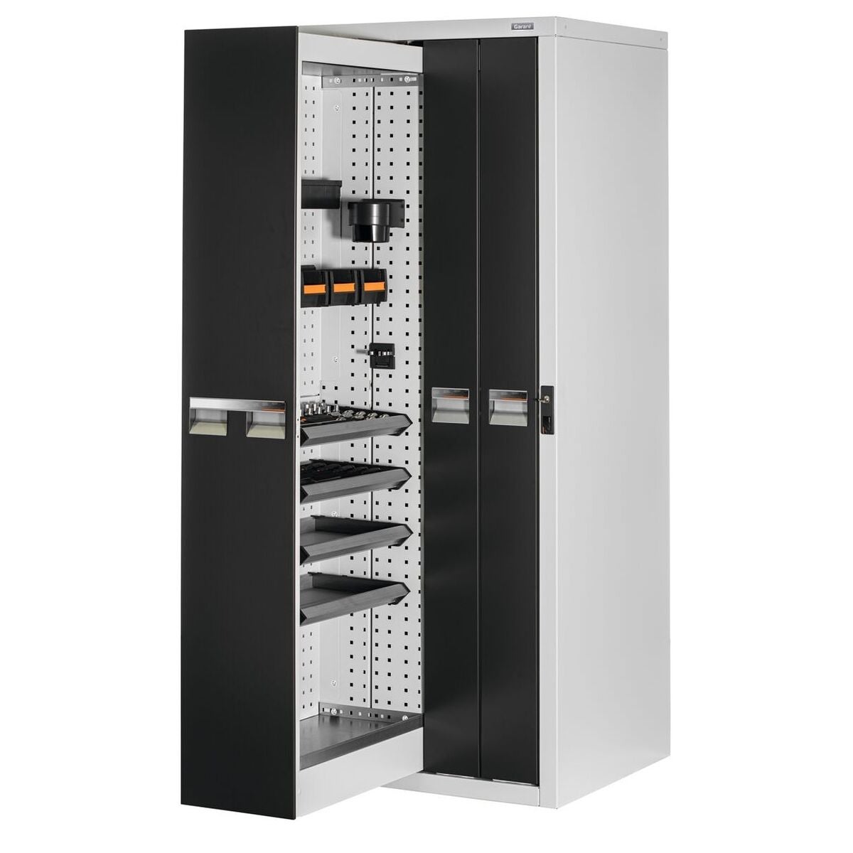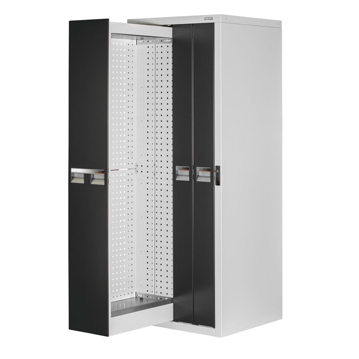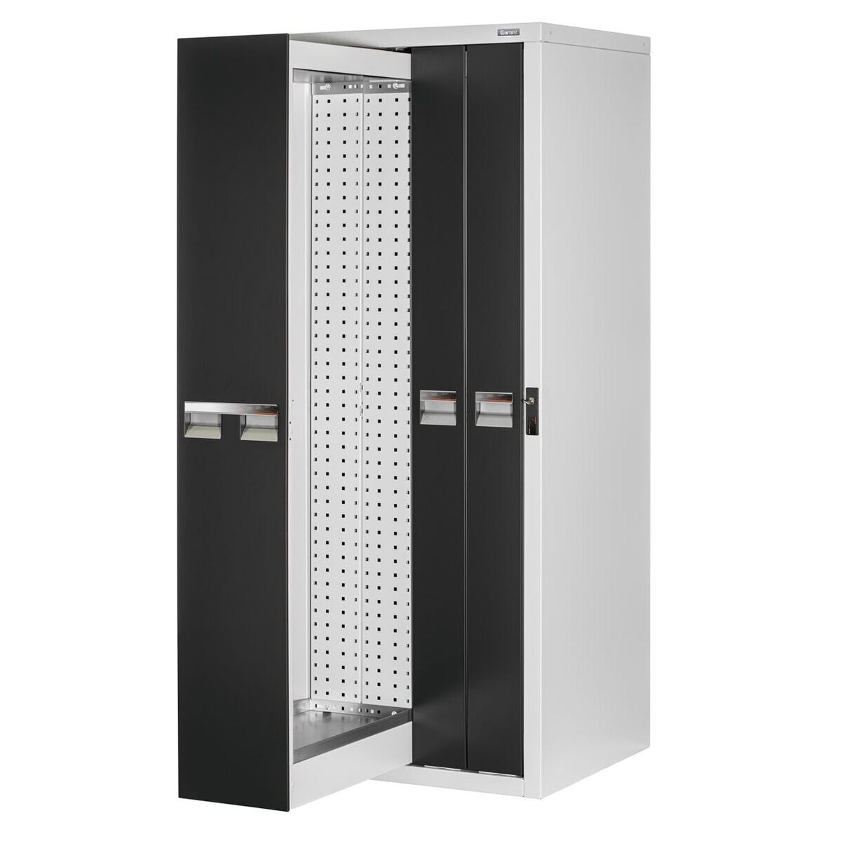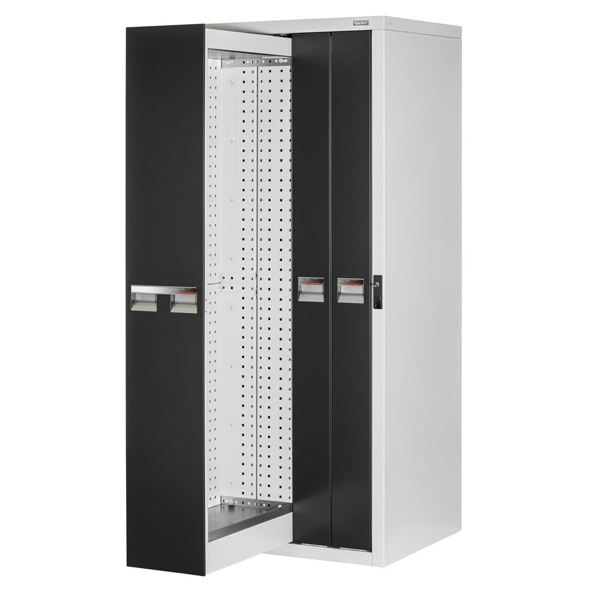 Utdragsramarna har ett perforeringsraster med □ 9×9 mm i 37 mm-raster för fastsättning av verktygshållare, hyllplanstråg och perforerade panelter. Vertikalskåpen är förberedda för golv- och väggmontering och måste ovillkorligen säkras mot vältning.