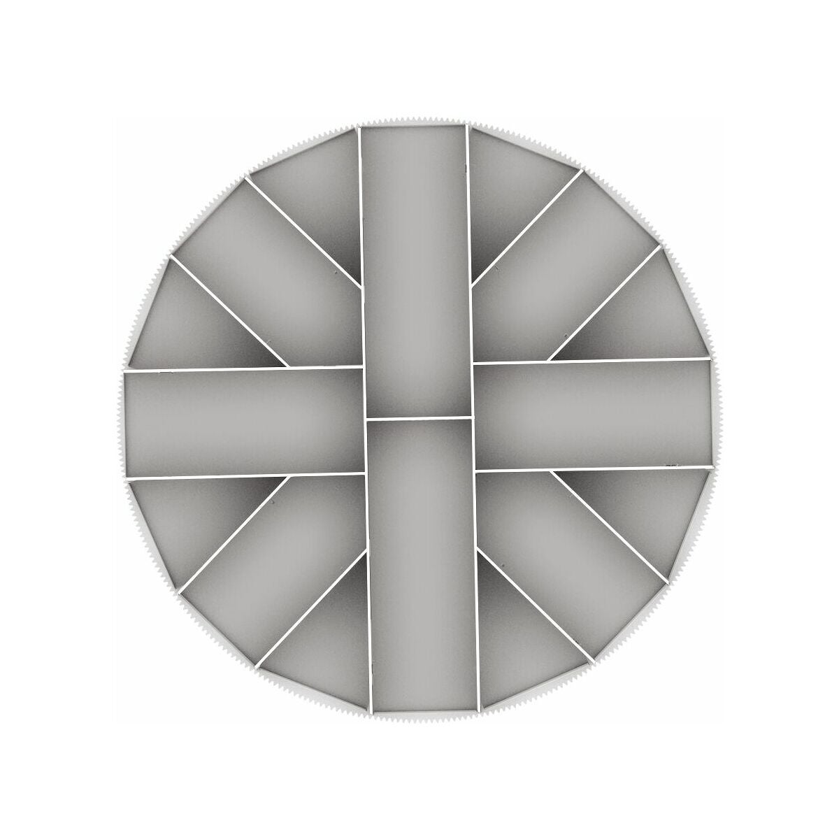 8 fackvarianter, lämpliga för både små, medelstora och stora artiklar, t.ex. fotskydd (10 par skyddslågskor upp till storlek EU 46), fallsäkringar, andningsskydd och arbetskläder.