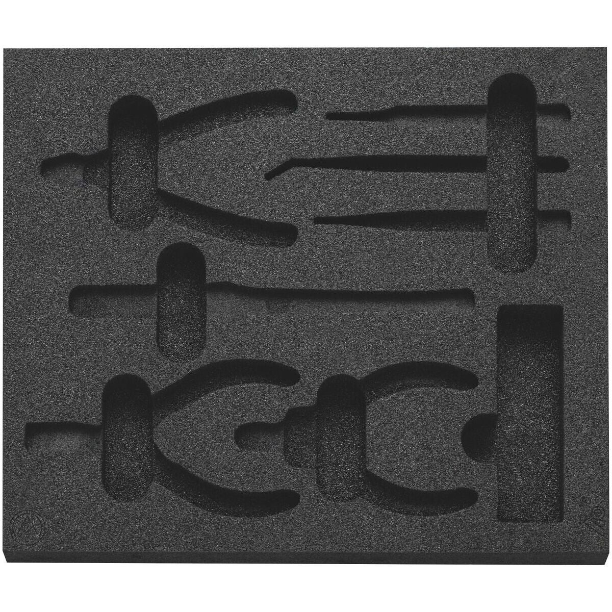 Vanliga verktygssortiment i ESD-cellplastinsats. Cellplastens slutna porer gör att den är oljebeständig och inte tar upp några vätskor.