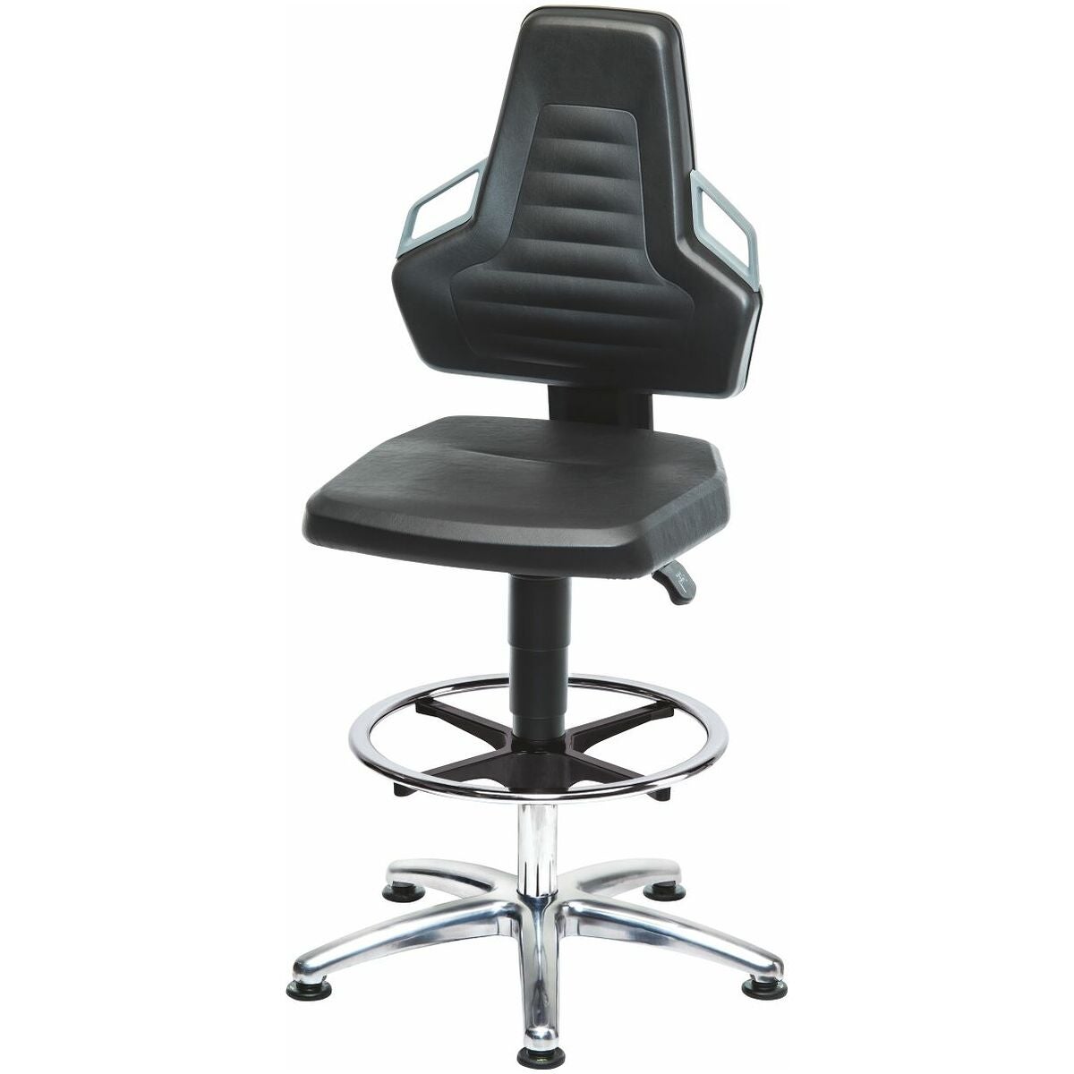ESD-arbetssnurrstol, konstläder, med glidknappar och fotring, hög BLACK