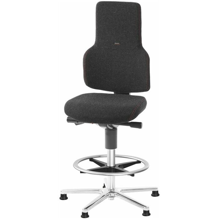 Ergonomisk arbetssnurrstol med synkronmekanik. Sitsstoppning och ryggstöd av ESD ledande specialtyg. Förhindrar statisk uppladdning. Ledande femarmat fotkors av aluminium. Hög säkerhet tack vare användning av en sats med 5 ESD-hjul/-glidfötter.