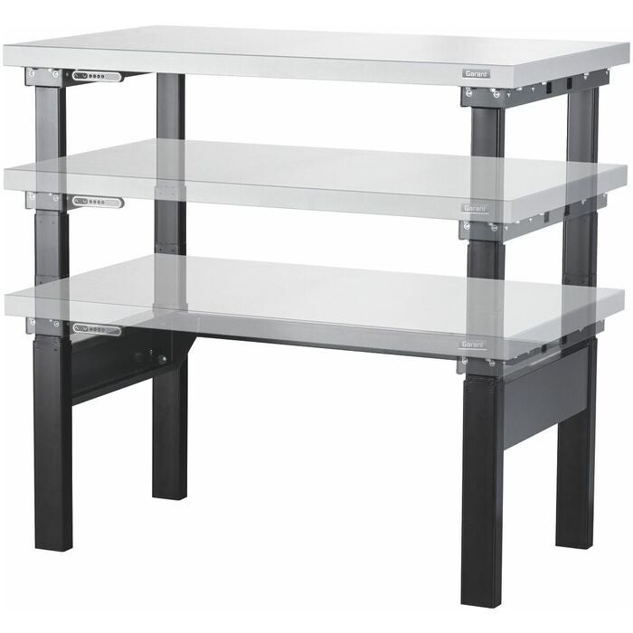 På grund av den största bärförmågan bör enbart åkbara hurtsar användas. Undvik att montera hurtsar under arbetsskivan. Med fler påbyggnadsdelar minskas bärförmågan i motsvarande mån. Levereras komplett monterad.