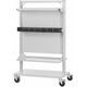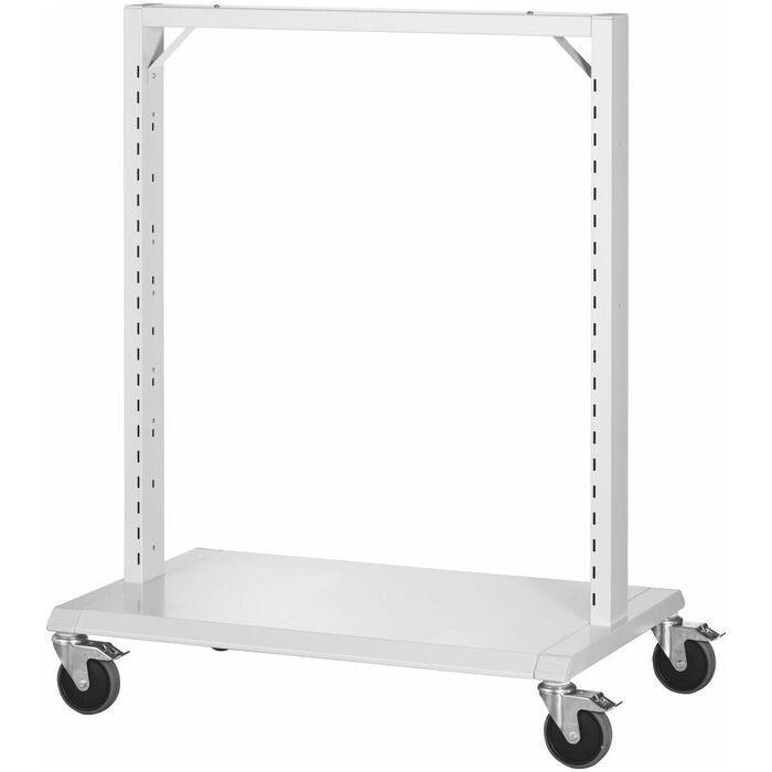 Gänghylsor på stativets insida för montering av perforerade paneler. Med 4 svängbara TPE-hjul med spärr, ⌀ 125 mm med grå slitstarka ledande hjul.
