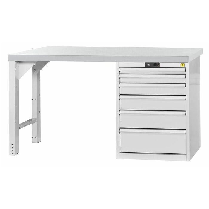 ESD Vario arbetsbänk med hurts höjd 850 mm, ESD-skiva 1500/6 mm