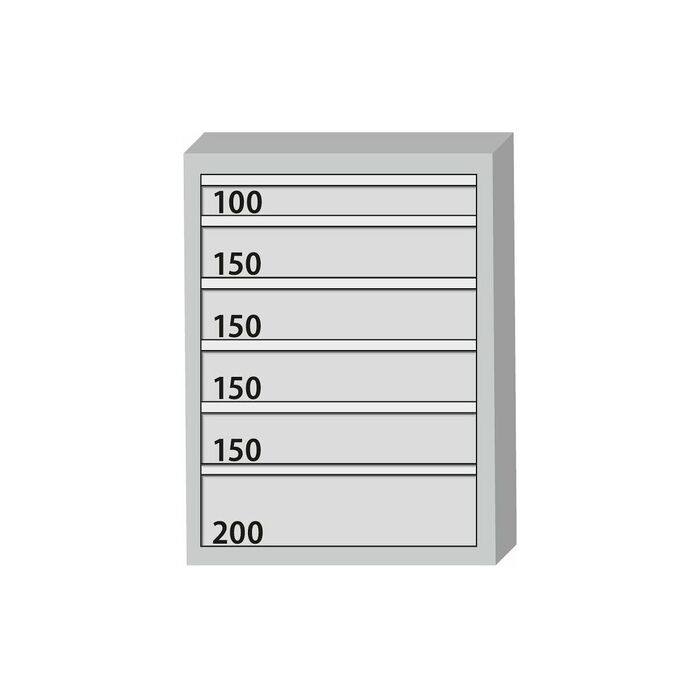 Helt utdragbara lådor med differentialutdrag. Utdragslådor med stansade hål i 25 mm raster (lådfronthöjd 75 mm och större). En enkelutdragssäkring förhindrar att flera utdragslådor öppnas samtidigt.