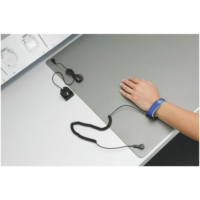 Setet består av: 1 × Jordningsarmband av textil, blått, inställbart, tryckknapp 4,0 mm samt nr 972802 storlek B.