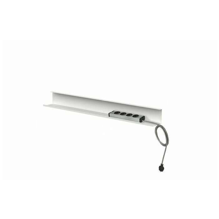 Kabelkanal av stål för sitt-/ståbord för att hålla ordning på eluttag, kablar etc.