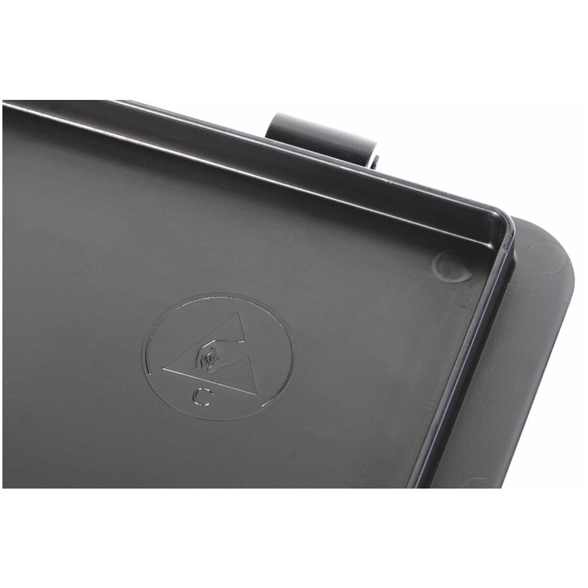 Högklassig staplingsbar lagerbehållare av elektriskt ledande plast. Beständig mot de flesta syror och oljor. Temperaturbeständig från -20 °C till 80 °C