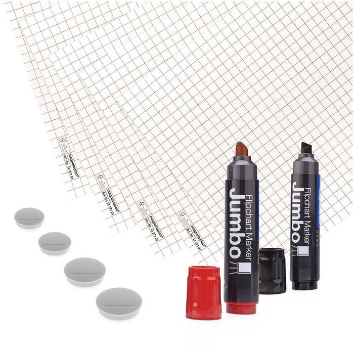 1 × blädderblocksmärkpenna Jumbo, röd (kilspets, linjetjocklek 2 – 10 mm).