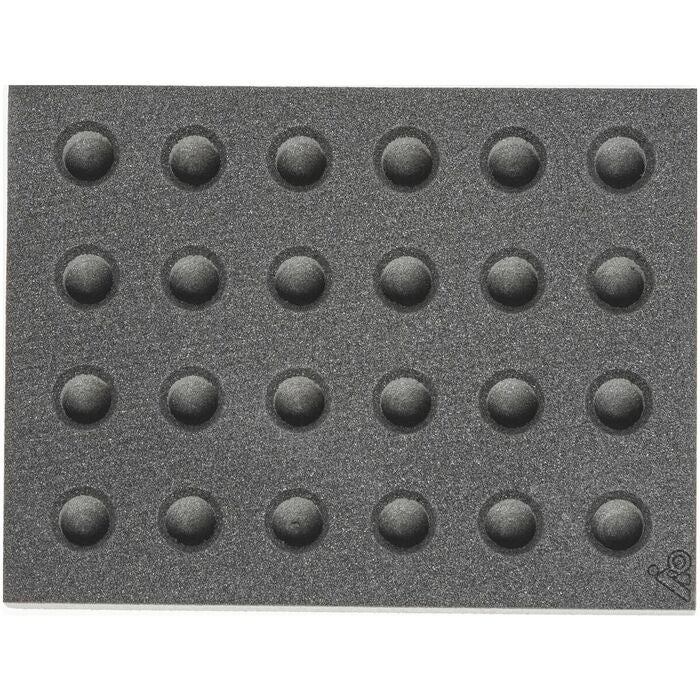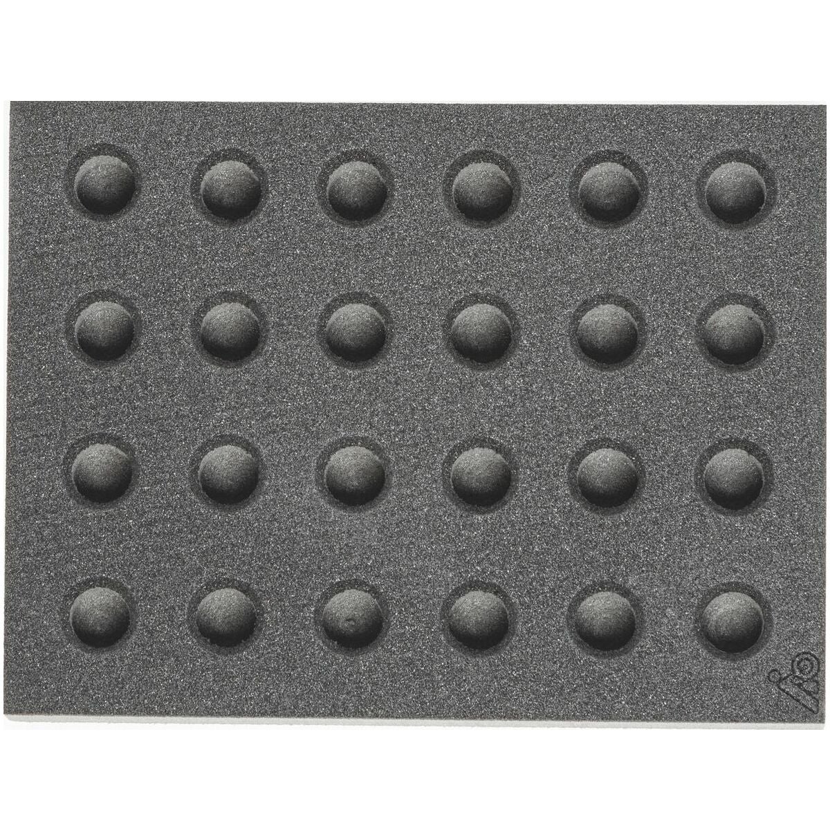 Tvåfärgad PE-cellplastinsats (antracit/grå, tom) med urfräsningar för individuell utrustning med spännhylsor. Cellplastens slutna porer gör att den är oljebeständig och inte tar upp några vätskor.