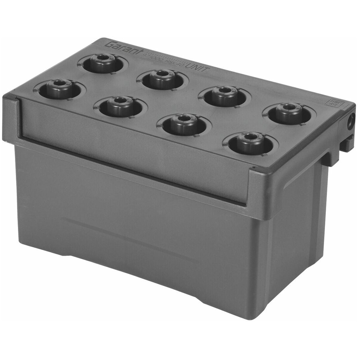 Verktygskassett av förslutbar polypropen med hållare för verktygsskaft. Verktygskassetten kan användas som separat enhet för transport och förvaring men lämpar sig även väl som flexibel komponent i transportvagn, CNC-skåp, CNC-hyllställ och UNIT-bärskena.