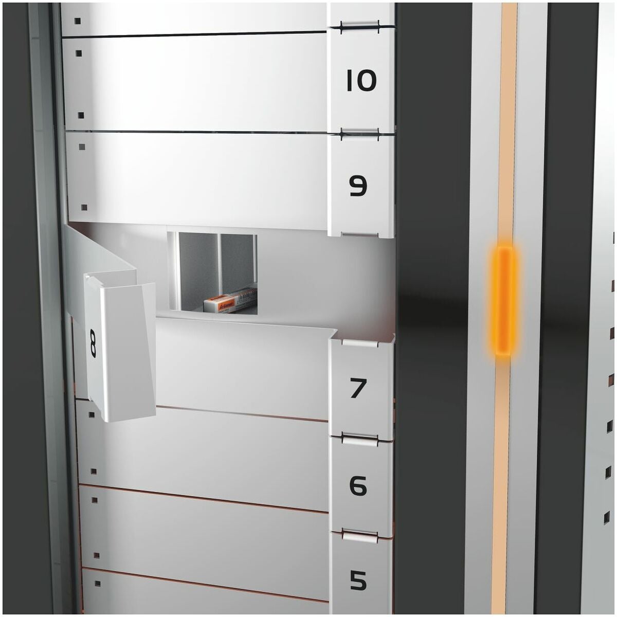 Varuutlämningssystem med innovativt trumsystem som garanterar en säker styckuttagning av varje enskild artikel. Mycket snabba varuuttag genom korta åtkomsttider, automatiskt öppnande fack och ljussignal vid rätt uttagsfack. Trumman i Tool24 PickOne finns med upp till 4 olika fackstorlekar som standardkonfiguration, och är smed en bärförmåga, på mer än 1000 kg specialutformad för industrianvändning. Flexibel placering av en pekskärm tack vare perforerade paneler på båda sidor.