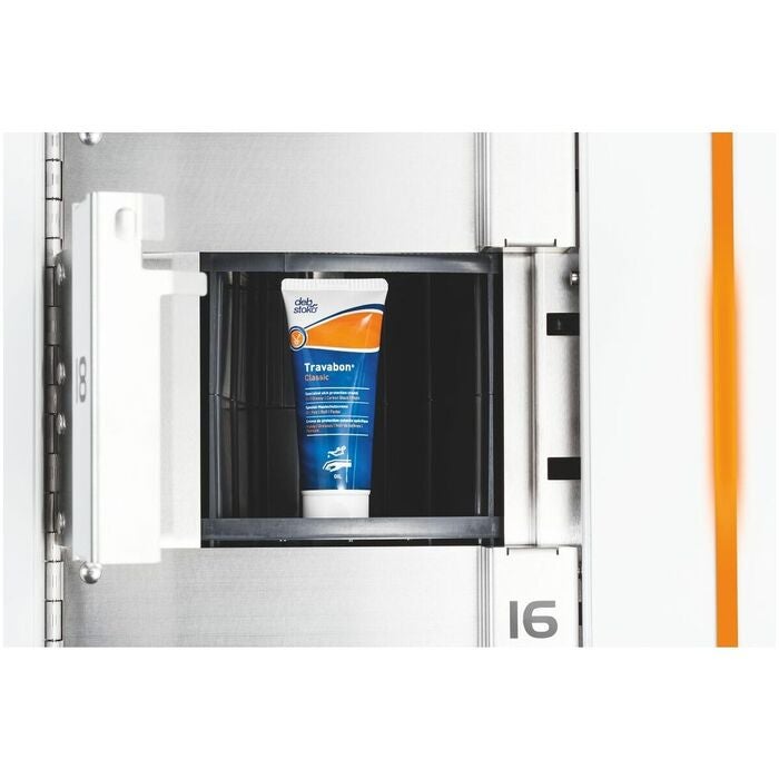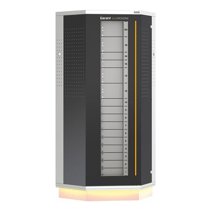 Varuutlämningssystem med innovativt trumsystem som garanterar en säker styckuttagning av varje enskild artikel. Mycket snabba varuuttag genom korta åtkomsttider, automatiskt öppnande fack och ljussignal vid rätt uttagsfack. Trumman i Tool24 PickOne finns med upp till 4 olika fackstorlekar som standardkonfiguration, och är smed en bärförmåga, på mer än 1000 kg specialutformad för industrianvändning. Flexibel placering av en pekskärm tack vare perforerade paneler på båda sidor.