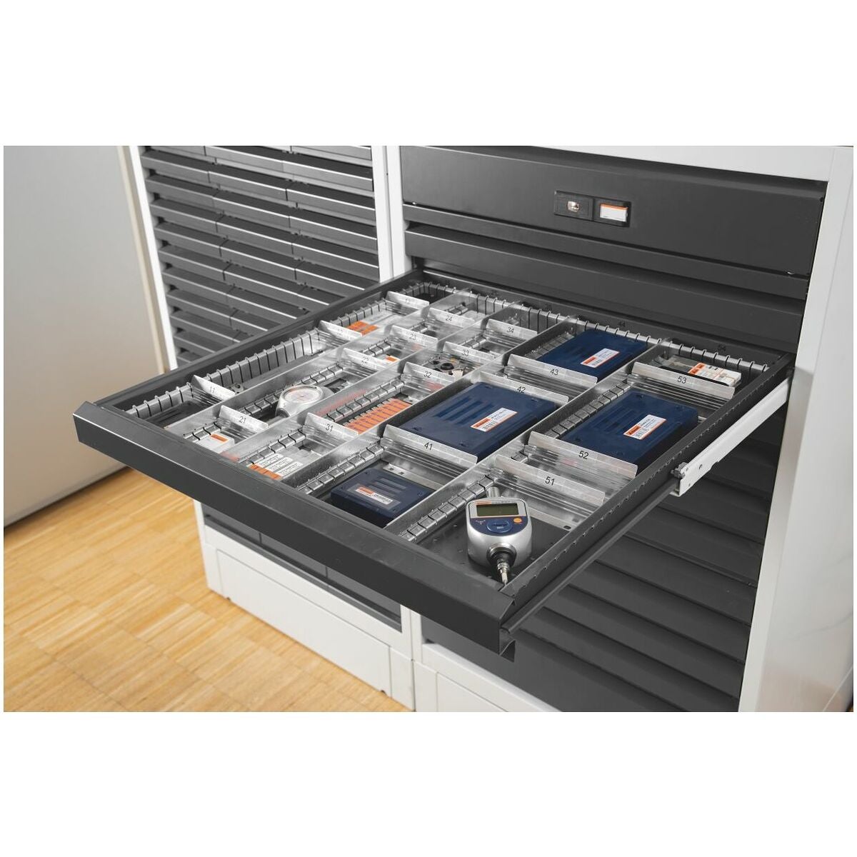 Flexibelt varuutlämningssystem för förvaring, utlämning och administration av spånavskiljnings- och montageverktyg, mätinstrument, arbetsskyddsartiklar och en mängd förbrukningsartiklar. Mastersystemet kan utökas och kombineras med fler utbyggnadssystem i godtyckliga Tool24 maskinvaruvarianter. Genom programpaketen, som kan beställas individuellt, är systemen exakt anpassade till dina behov.