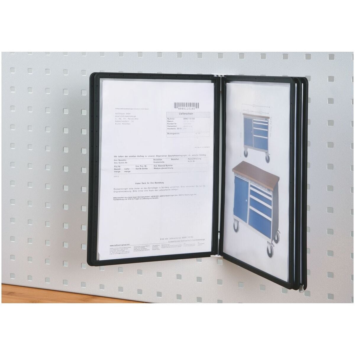 Magnetisk vägghållare i metall med 5 paneler i DIN A4-format. Paneler av polypropen, dokumentsäkra och skanningsbara.