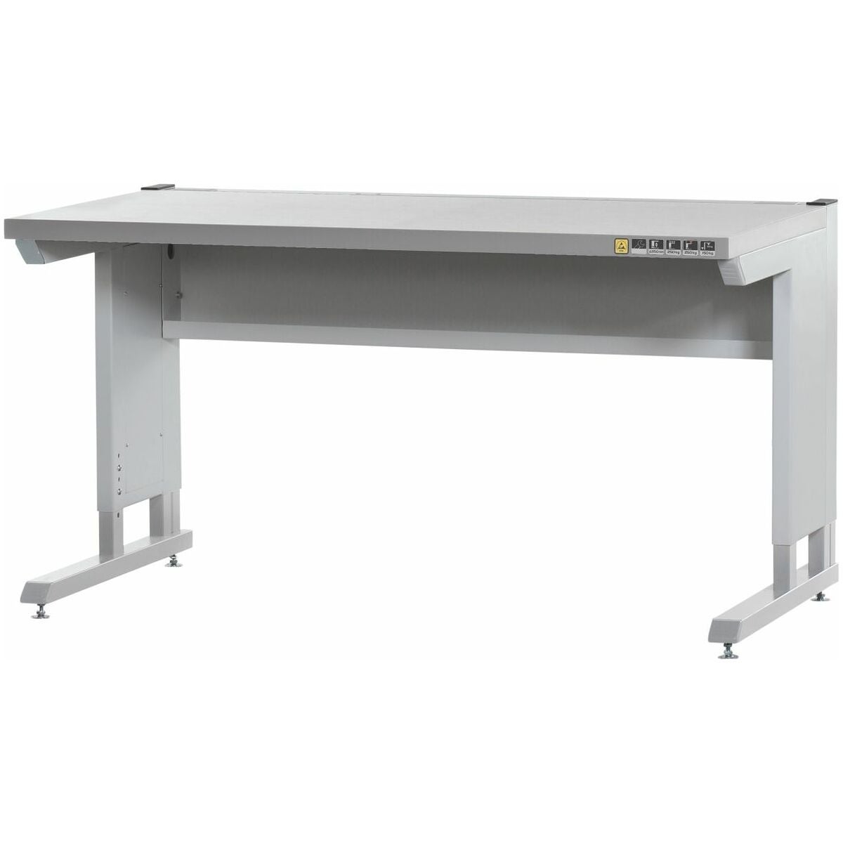 3 mm antistatisk ABS-list runt om. Central jordningspunkt på arbetsskivans undersida. Ingen jordung via fotdelarna.