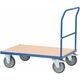 Svetsad stålrörs- och stålprofilkonstruktion. Lastplan av träfiberskiva med ytdekor av bok.